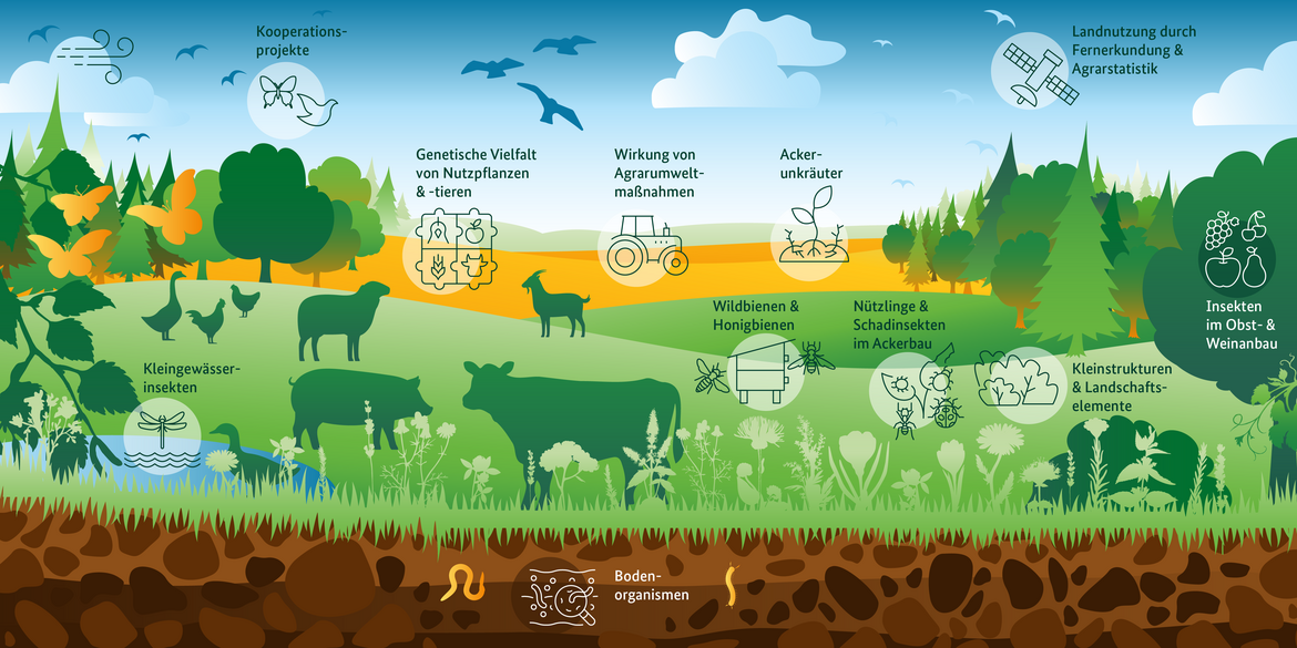 Im Auftrag des Bundesministeriums für Landwirtschaft, Ernährung und Heimat sind insgesamt 12 Fachinstitute des Thünen-Institutes und des Julius Kühn-Institutes sowie das Informations- und Koordinationszentrum für Biologische Vielfalt der Bundesanstalt für Landwirtschaft und Ernährung im Vorhaben aktiv.
