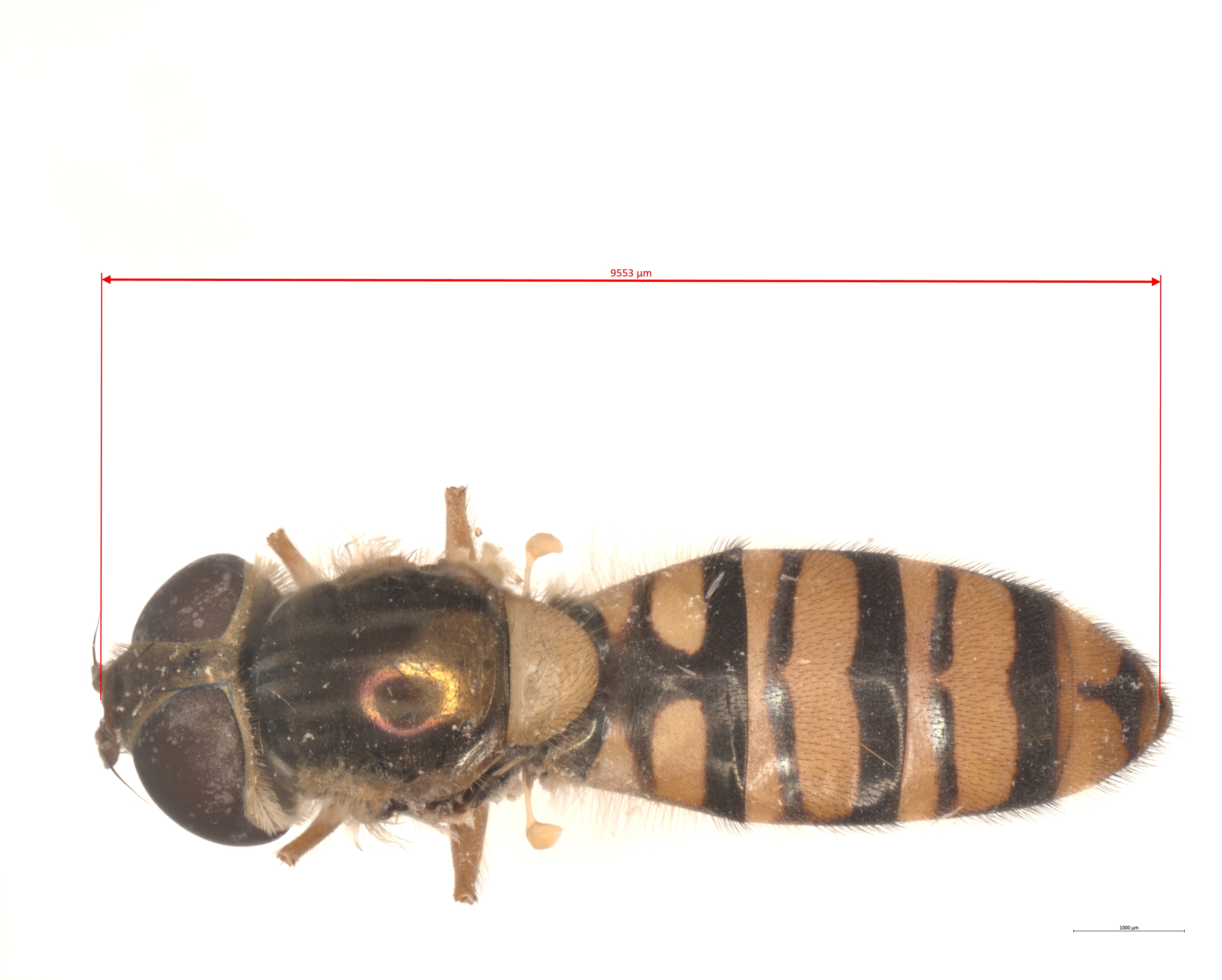 Measuring the body size of hoverflies provides important insights into the condition and medium- to long-term fitness of the these beneficial insects. The size of adult aphid-feeding hoverflies depends, among other factors, on how well their larvay were nourished - i.e., how many aphids were available to them. Changes in land use, such as reduced pesticide application, can influence aphid densities and thereby indirectly affect the fitness and performance of hoverflies.