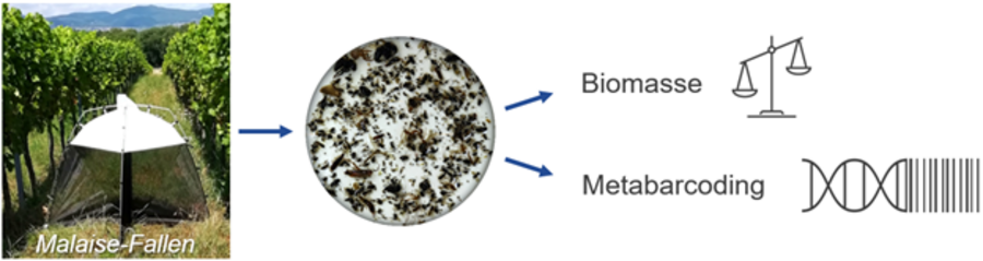 Mithilfe eines Insektentrendmonitorings im Weinbau werden langjährige Entwicklungen zur Beurteilung von Veränderungen in der Biomasse und der Artenvielfalt anhand von Gewicht, Artenzahl, Artenzusammensetzung und Stetigkeiten bewertet. Damit können klimawandel- und bewirtschaftungsbedingte Auswirkungen auf die Insektendiversität untersucht werden. Neben der Ermittlung der Biomasse wird Metabarcoding zur Erstellung umfangreicher Artenlisten eingesetzt. Letzteres ermöglicht eine umfassende Bewertung von Veränderungen der Artzusammensetzung und dem Vorkommen von Neobiota und Rote Liste Arten und kann damit die Notwendigkeit zum Ergreifen naturschutzrelevanter Maßnahmen aufzeigen. Für das Trendmonitoring Weinbau ist geplant, auf Weinbergsflächen des Bundes an der Mosel und in der Pfalz zu arbeiten, bei denen ein langfristiger Zugriff gewährleistet ist. Beide Regionen stellen die beiden extremen Pole des deutschen Weinbaus (Steillagen- Flachlandweinbau) dar.