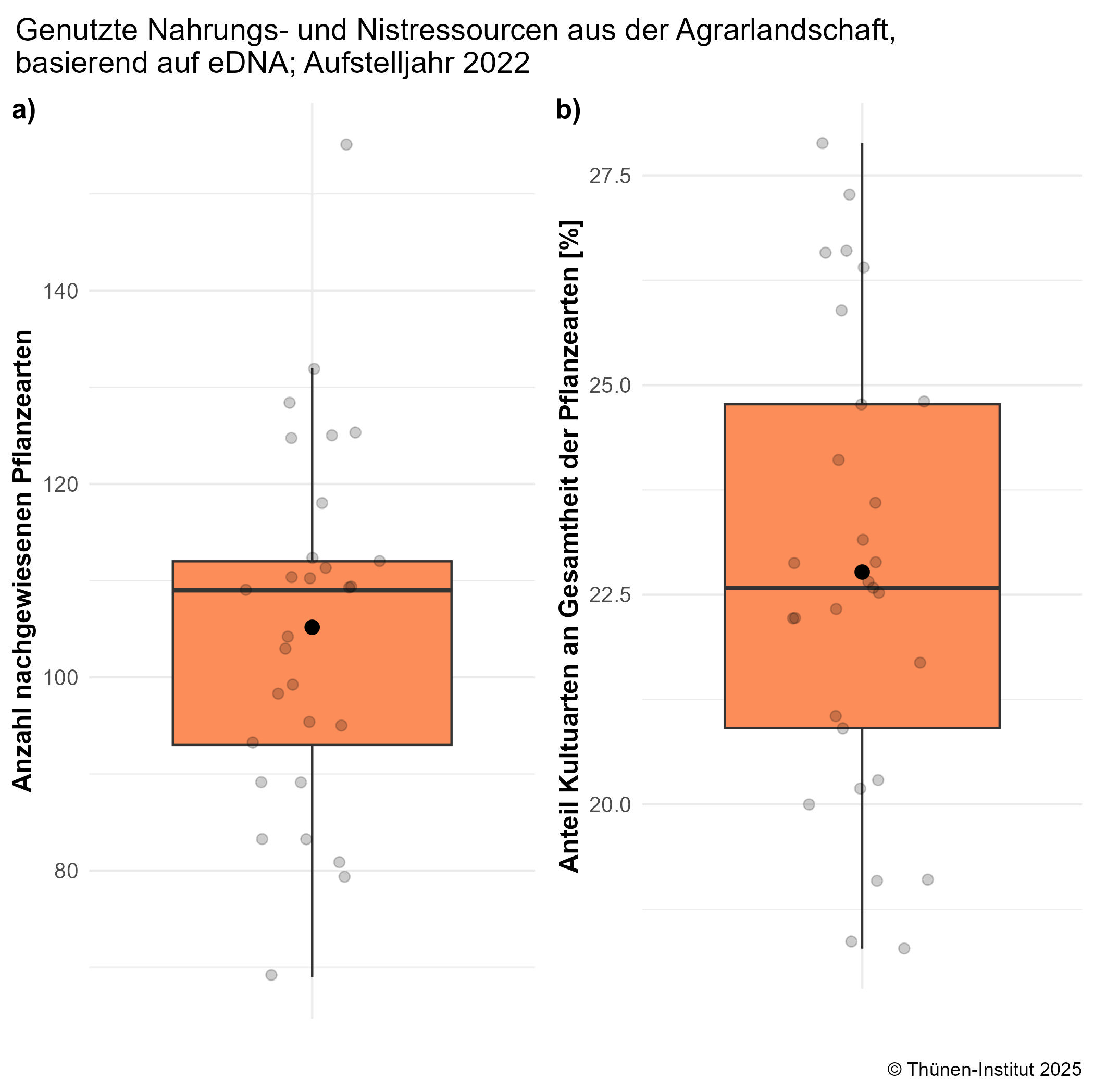 Der Indikator beschreibt mittels DNA-Sequenzierung nachgewiesene Pflanzenarten in den pflanzlichen Rückständen (gesammelte Pollen und eingetragenes Nistmaterial) der Nisthilfen. Mit ihm wird erfasst, welche und wie viele Pflanzenarten hohlraumnistende Wildbienen als Ressourcen nutzen. Darüber hinaus gibt der Indikator Auskunft über das Verhältnis genutzter Ressourcen von Wild- zu Kulturarten. Er wird berechnet als (A) die Summe der mittels DNA-Metabarcoding nachgewiesenen Pflanzentaxa, und (B) der Anteil von Kulturarten an der Gesamtheit der nachgewiesenen Pflanzentaxa.