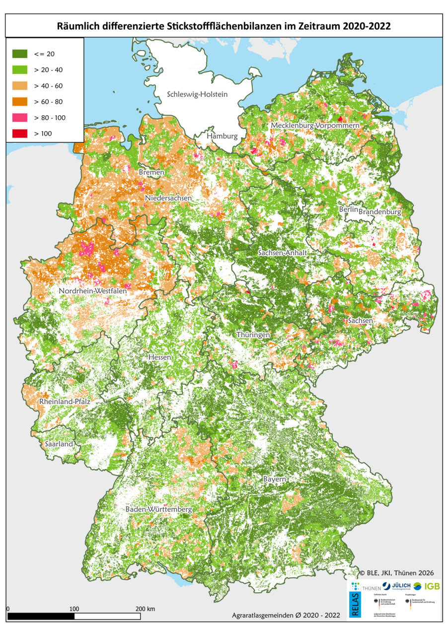 Die Anreicherung von Nährstoffen in der Atmosphäre, in Boden und Wasserkörpern verschiebt das natürliche Konzentrationsspektrum hin zu nährstoffreichen Biotopen und reduziert so die Lebensraum- und Artenvielfalt. Die räumliche Verteilung und Entwicklung der Bilanzüberschüsse dienen als Indikatoren für die Belastungssituation der Flächen im Offenland mit Nährstoffen.